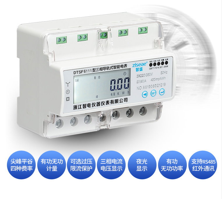 三相導(dǎo)軌式多費(fèi)率電能表DTSF6111-7系我公司采用微電子技術(shù)計量電能,采用進(jìn)口集成電路,應(yīng)用數(shù)字采樣處理技術(shù)及SMT工藝等先進(jìn)技術(shù)研制開發(fā)的電子式電能表。能直測量電能計量中正向有功電能,7位LCD顯示器顯示有功用電量,具有可靠性好、體積小、重量輕、外表美觀、工藝先進(jìn)、35mmDIN標(biāo)準(zhǔn)導(dǎo)軌式安裝等特點(diǎn):并具有良好的抗電磁干擾、低自耗節(jié)電、精度高、高過載、穩(wěn)定性強(qiáng)、防竊電、壽命長,液晶屏幕上可顯示當(dāng)前總電量,無功電量,尖峰平谷的電量,電流,電壓,功率,功率因素,頻率,支持RS485 DL/645--2007或MODBUS通訊規(guī)約。